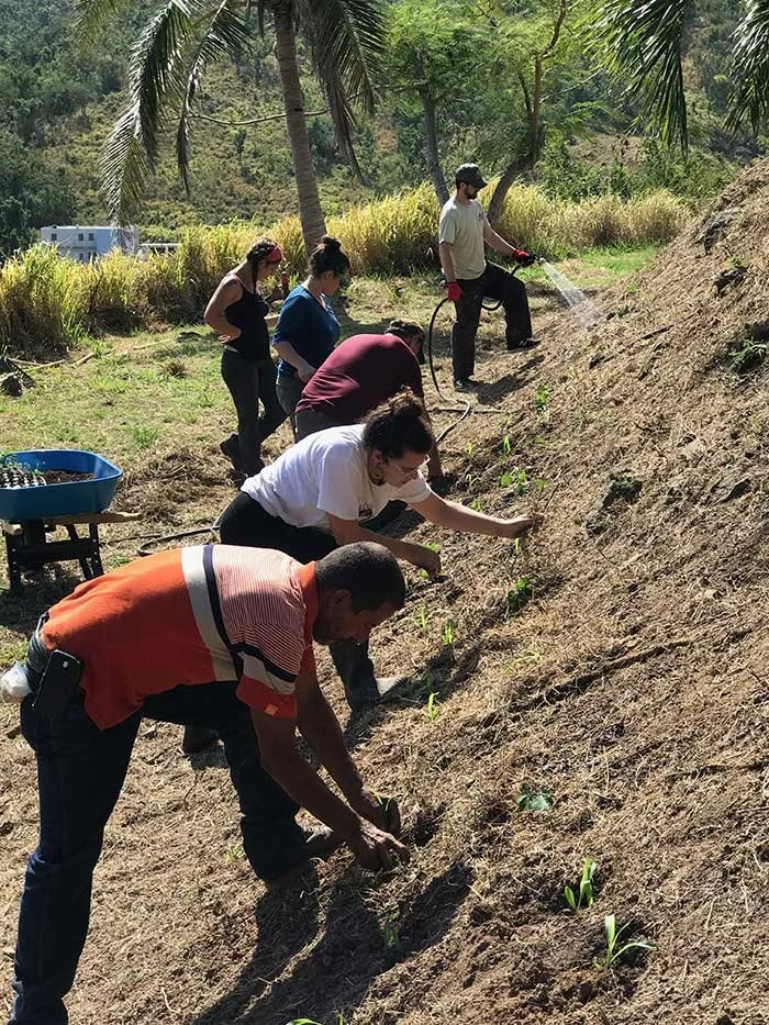 The GBSEN team, which included Walter Poleman, Kimberly Wallin, Tatiana Abatemarco, and Tatiana Gladkikh from the Rubenstein School, partnered with Centro para la Conservación del Paisaje to work in solidarity with Puerto Ricans as they restored watersheds, farms, and structures in communities that surround El Yungue National Forest in the northeastern part of the island.